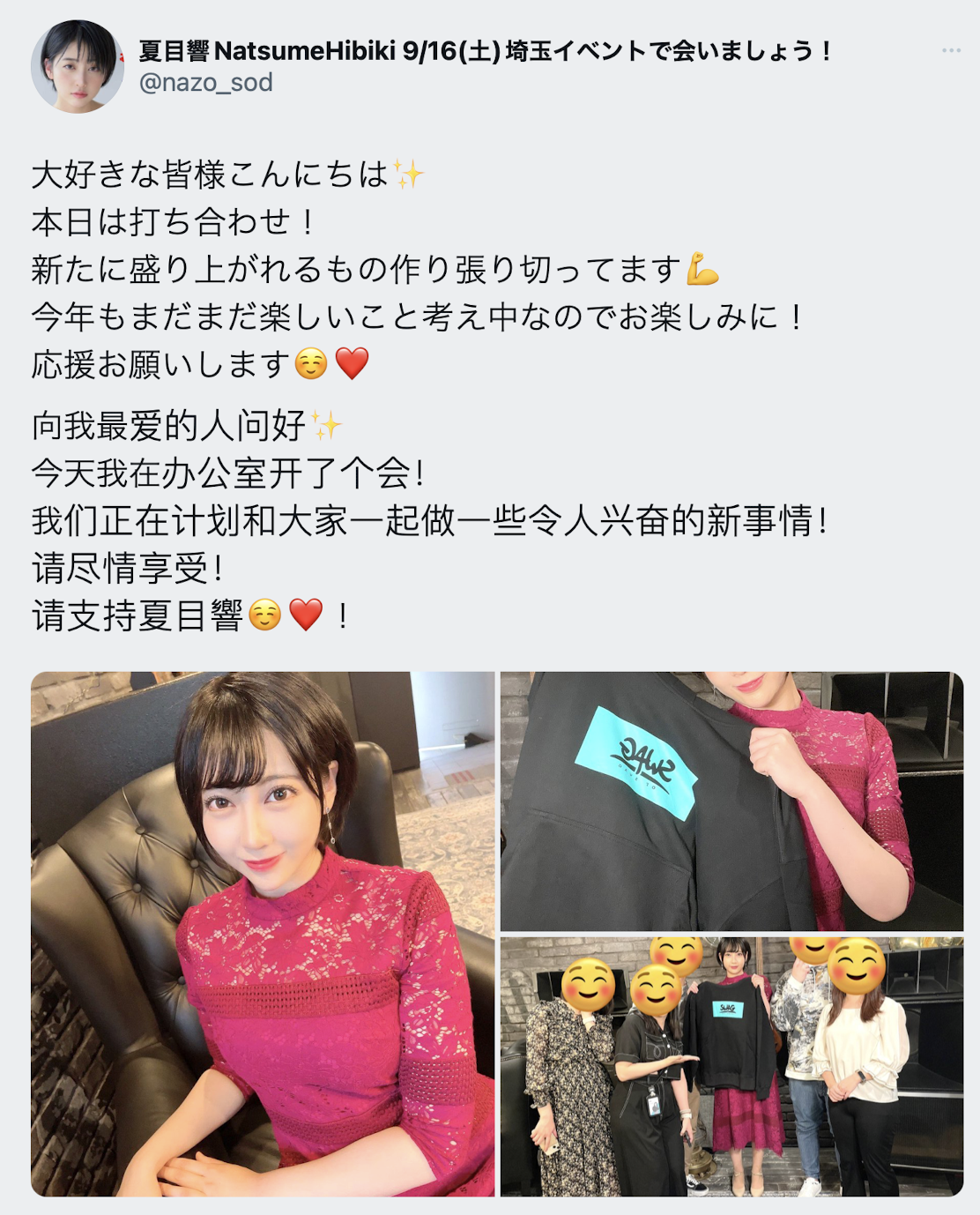 最后的最后请大家看看这篇截图:是的,没错,正确,SWAG不久前去找了日本知名片商SOD Star代表的专属女优夏目响开会,双方决定一起干件轰轰烈烈的大事,不只会让夏目响有了海外活动初体验,还会有SWAG用户才有的活动ー我们都知道现在女优们对来到台湾举办活动很有兴趣,夏目响虽然起步晚了一点,但她可是SWAG有史以来合作等级最高的AV女优ー相信以SWAG丰沛的企划力以及丰富的想像力那活动肯定非常有趣,我是非常期待,你呢?