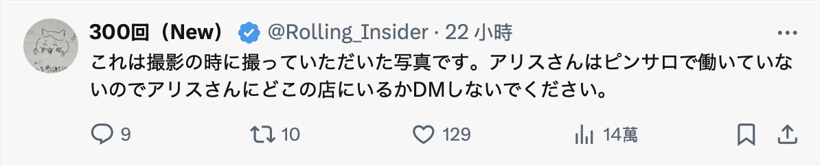 如果是真的去了风俗店的话,那七瀬アリス(七濑爱丽丝)肯定潮爽der,生意做不完惹,偏偏这是拍摄作品的现场照ー所以当拍完片子、累得要死的七瀬アリス(七濑爱丽丝)回家看到自己的私讯被塞爆问是去了那间风俗店上班时她气炸了,所以她发文这么说: