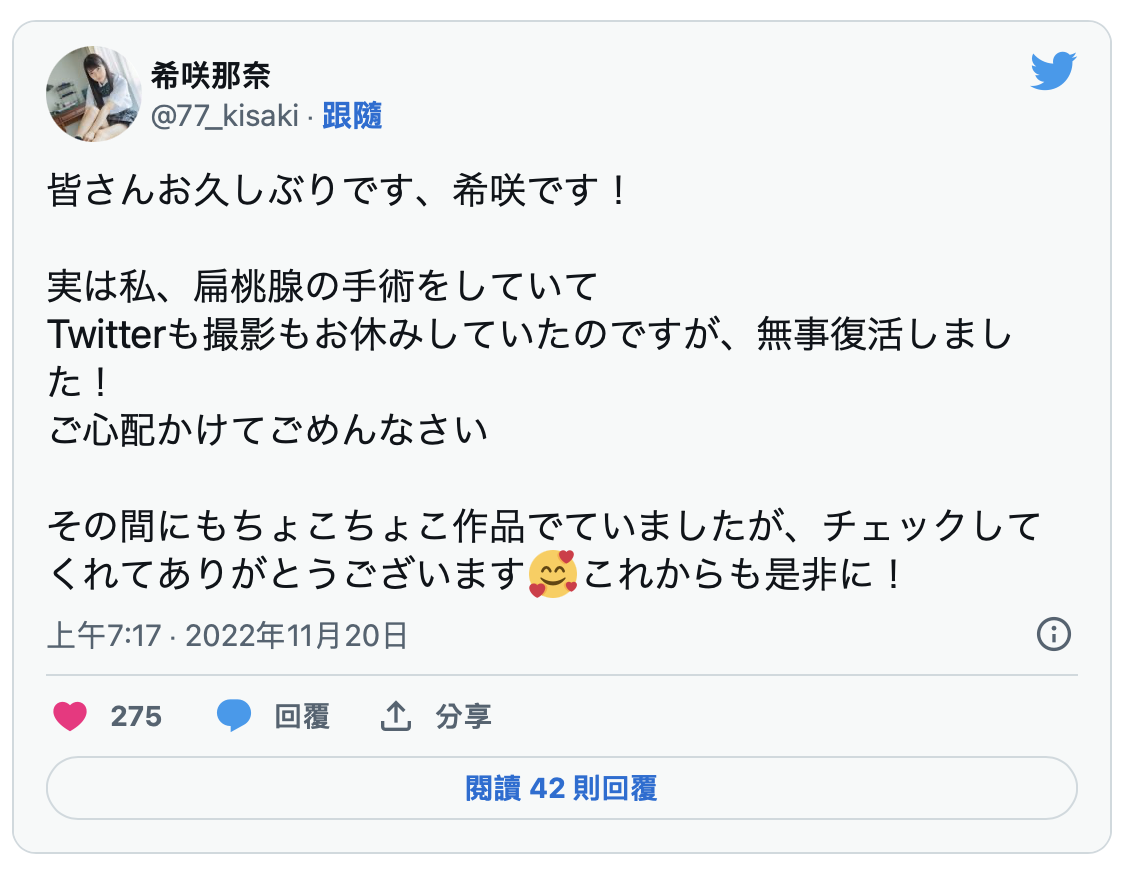 大量发片后脱离战线⋯希咲那奈揭晓原因!