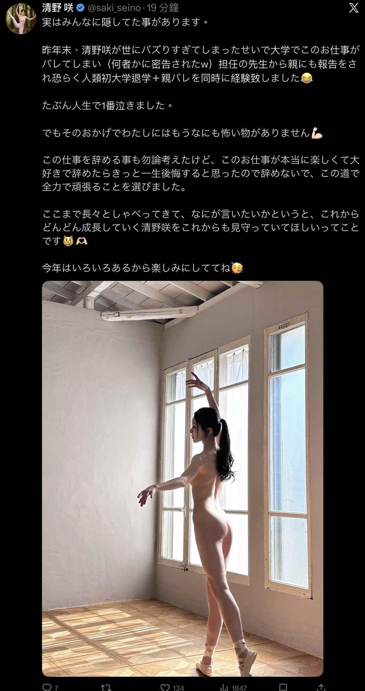然后她在自己的X(https://x.com/saki_seino)发文,说前一阵子的状况很糟糕啊~