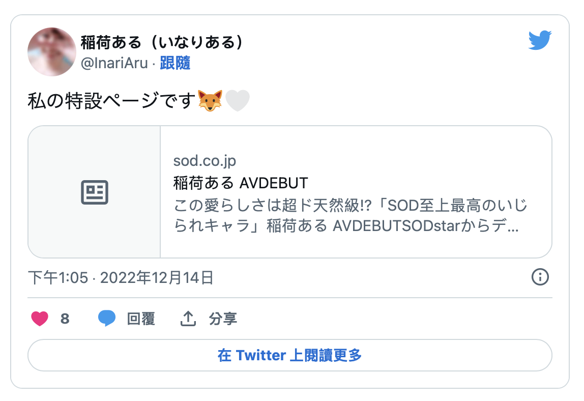之前一个多月没更新社群的「多香良」、在社群自我介绍拿掉SOD STAR专属的「宫岛めい(宫岛芽衣)」状况都不太对劲,而SOD也在官网公布了新鲜的肉体ー那就是之前在百货公司上班的稲荷ある(稻荷步):
