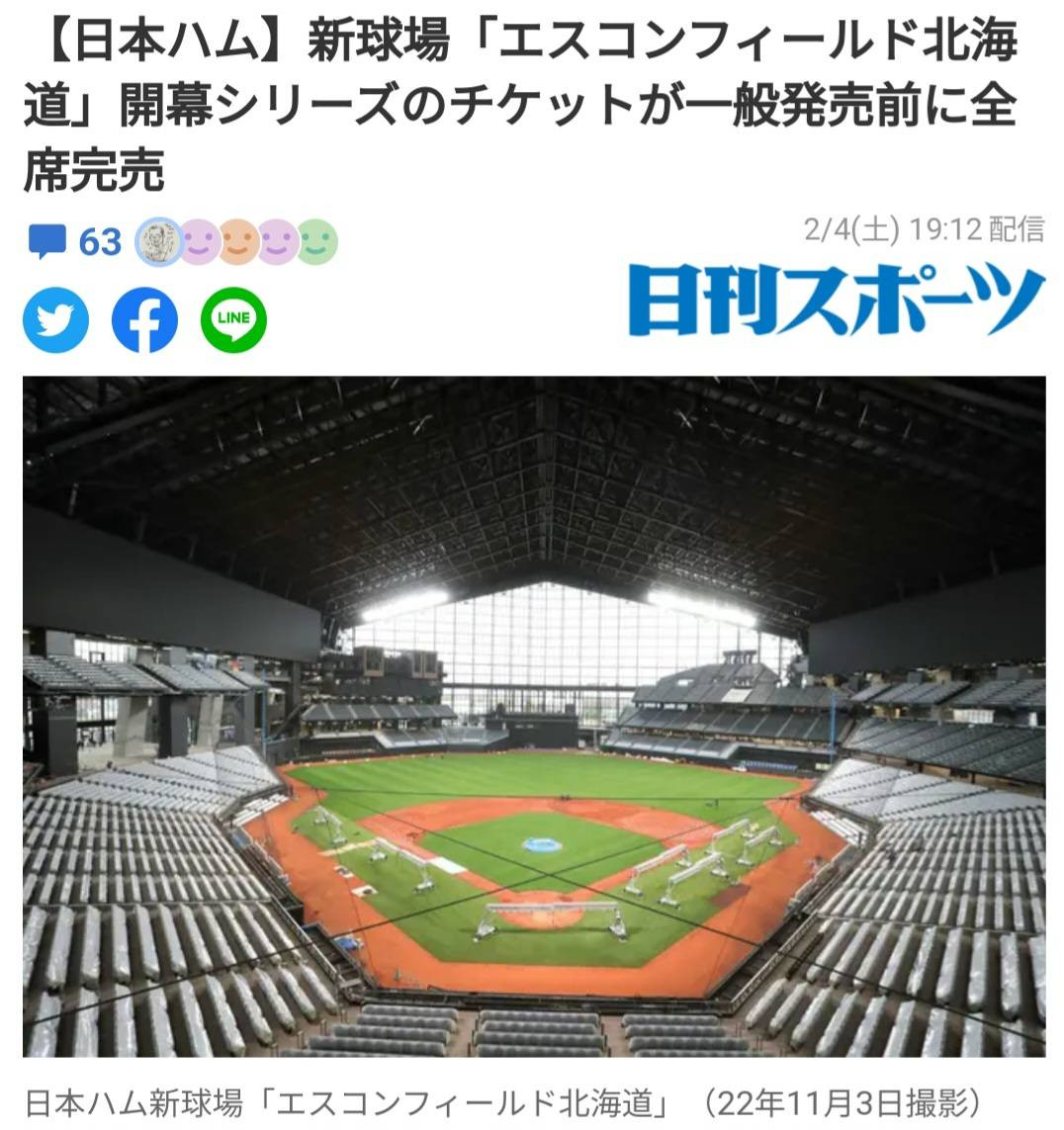 三天前,日本职棒北海道日本火腿斗士队全新主场门票开卖,三场比赛超过十万张门票瞬间秒杀,一张不剩〜