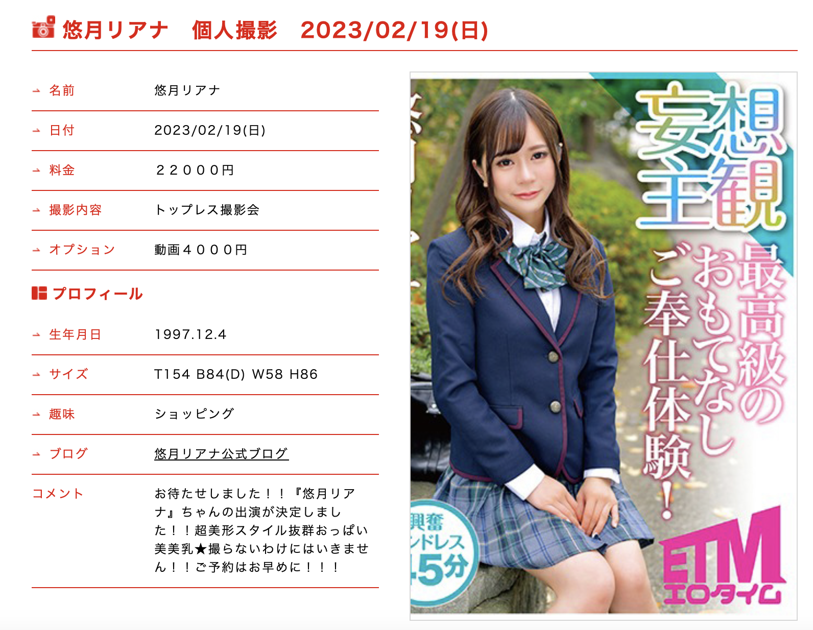 从出道到归于平淡,这是每个AV女优必经的过程,只是有些人很快就以自由落体的形势急坠,有些人可以撑比较多,以一个一出道就没拿到专属合约的企划女优而言,悠月リアナ(悠月梨爱菜)能一待四年也能在摄影会和大家好好说再见真的不错,谢谢她4年来的陪伴,要幸福喔~
