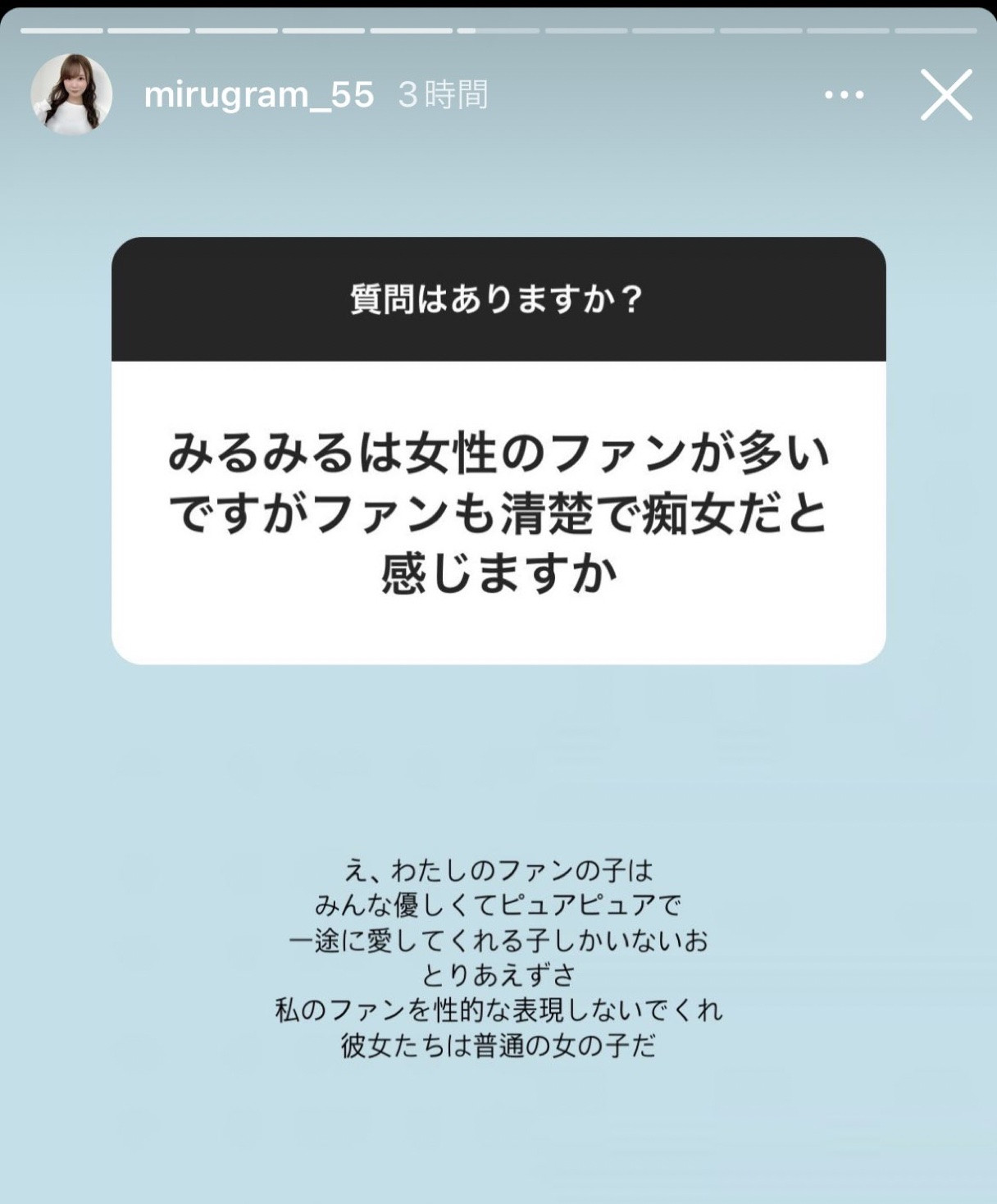 请勿骚扰我的女粉!miru:她们只是喜欢我、不是痴女。