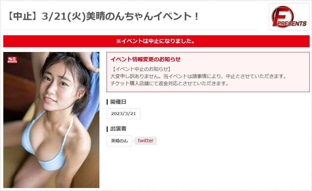 首先是3月8日,经纪公司和美晴のん(美晴暖)本人都发表了要在出道发售的前一天于YouTube直播的消息,美晴のん(美晴暖)还在转推的发文中提到说虽然自己很简单但会加油的;但到了活动当天(3/13),事务所却宣布因为「诸多因素」所以必须中止这一次的直播⋯