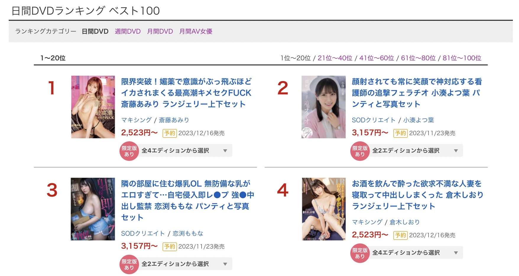 我觉得应该还好,因为小凑的买气一直很旺,就算片商再喜新厌旧也不至于忘了她的存在:像昨天上架的作品「颜射されても常に笑颜で神対応する看护师の追撃フェラチオ」就拿下了FANZA(DMM)昨天的销售第二,遥遥领先SOD集团其他的作品⋯