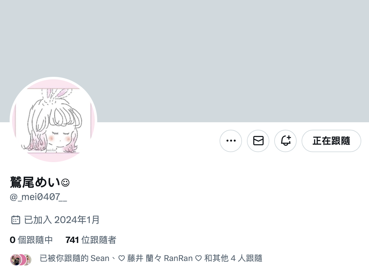 是的,之前曾经舍弃自己的社群帐号让给经纪公司使用的鹫尾めい(鹫尾芽衣)又回来了,想追踪她的朋友就按连结(https://twitter.com/_mei0407__)追踪: