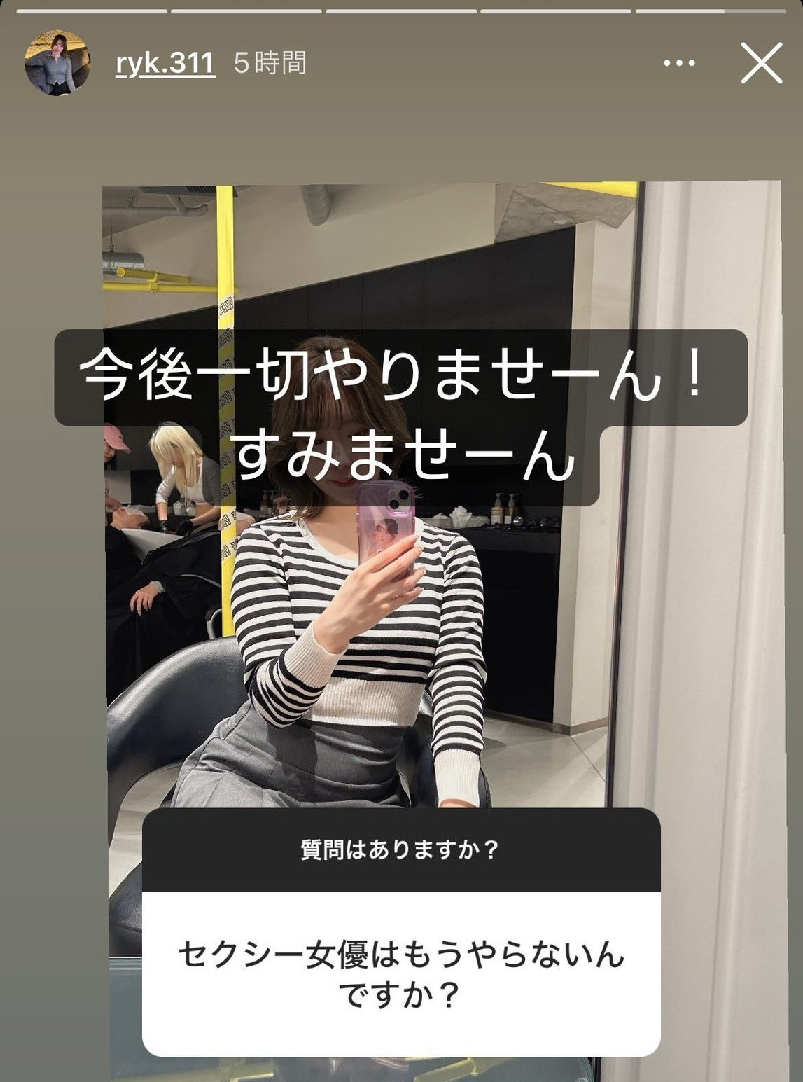两个状况很怪,一个是她的X(https://twitter.com/konno_cmore)几乎没有更新,另一个则是她另外有一个IG(https://www.instagram.com/ryk.311/),两个帐号两个身分,一个是AV女优绀野るり(绀野琉璃),另一个则是在六本木陪酒的酒店妹りょうか(凉香)ー其实这样并不冲突,AV女优有两个甚至更多身分的大有人在,用不同的帐号管理不同的身分OK的,但问题就在于她在IG上做的一问一答: