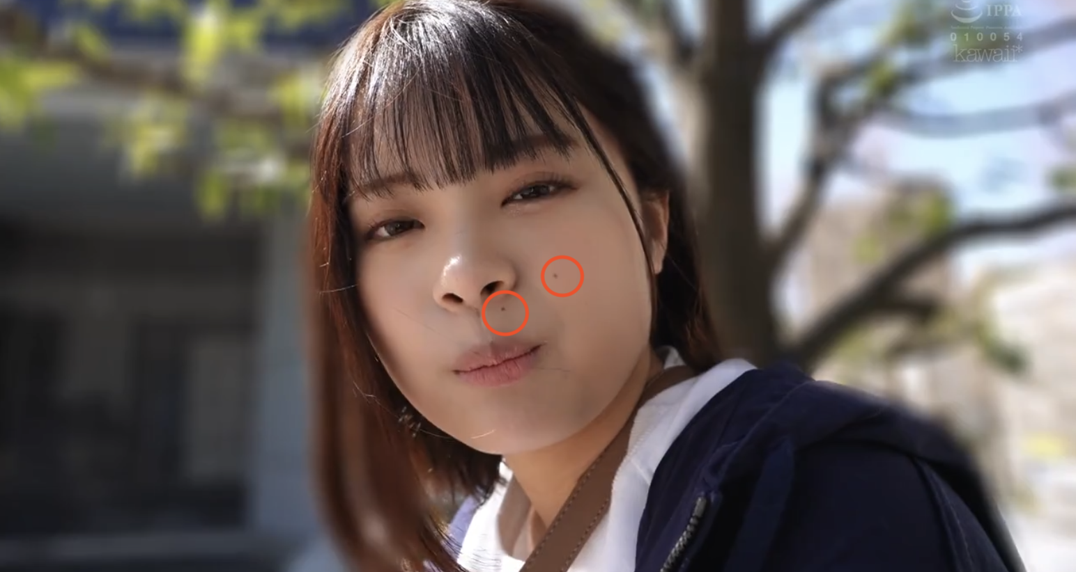透过嘴唇上方以及脸颊上的痣我们就可以确定她就是在片商kawaii*出道的「七绪ひみか(七绪绯美佳)」:她是去年暑假出道的好手,因为被认为是広瀬すず(广濑铃)的明星脸,所以片商是直接用专属契约「框」了下来,给了她5支作品的机会⋯