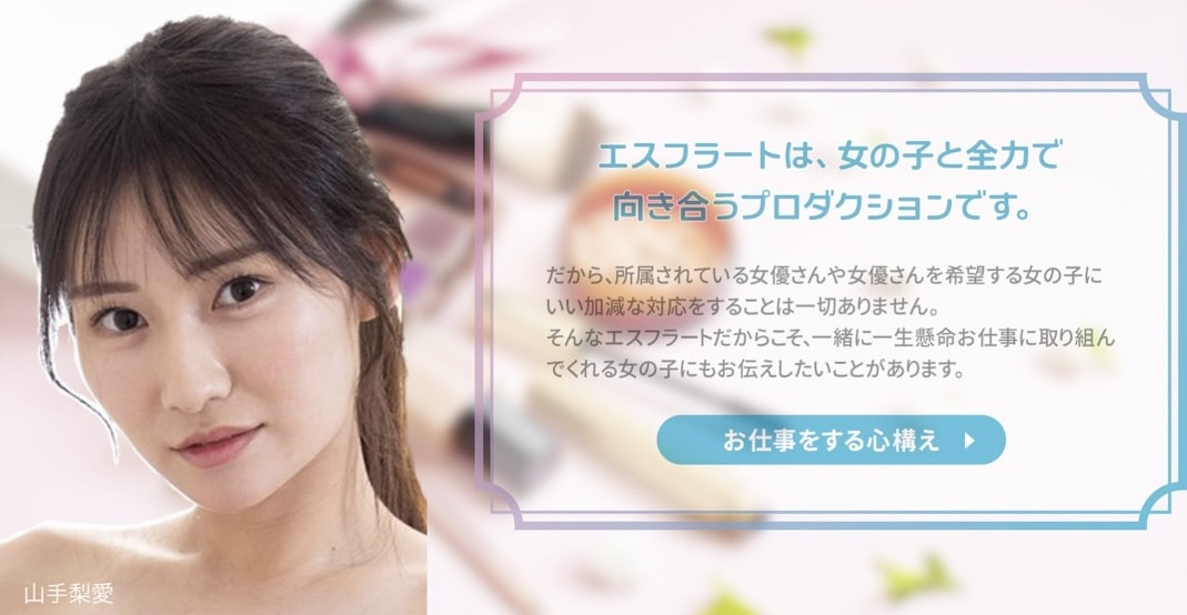 其实提供厂商参考的女优资料库也已经找不到山手梨爱了,意思就是山手梨爱去哪儿目前不明,但她已经不在S Flirt(エスフラート)这间经纪公司了ー但目前事务所官网还没清理干净,山手还是有Banner在,事务所的购物网站也还是继续贩售她的电子写真集(东西都做了当然继续卖),让大家能缅怀一下这位身材教科书:
