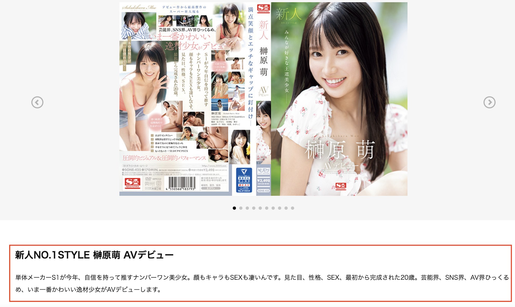 很明显地,这文案的写法和其他新人完全不同,再加上直接在FANZA开了促销网页(https://www.dmm.co.jp/digital/videoa/moe_sakakibara/),看得出片商准备了大量的写真和影片要替她做行销,这如果不是榊原萌本人超级正就是有着相当惊人的背景,只要公开就会震撼AV界〜