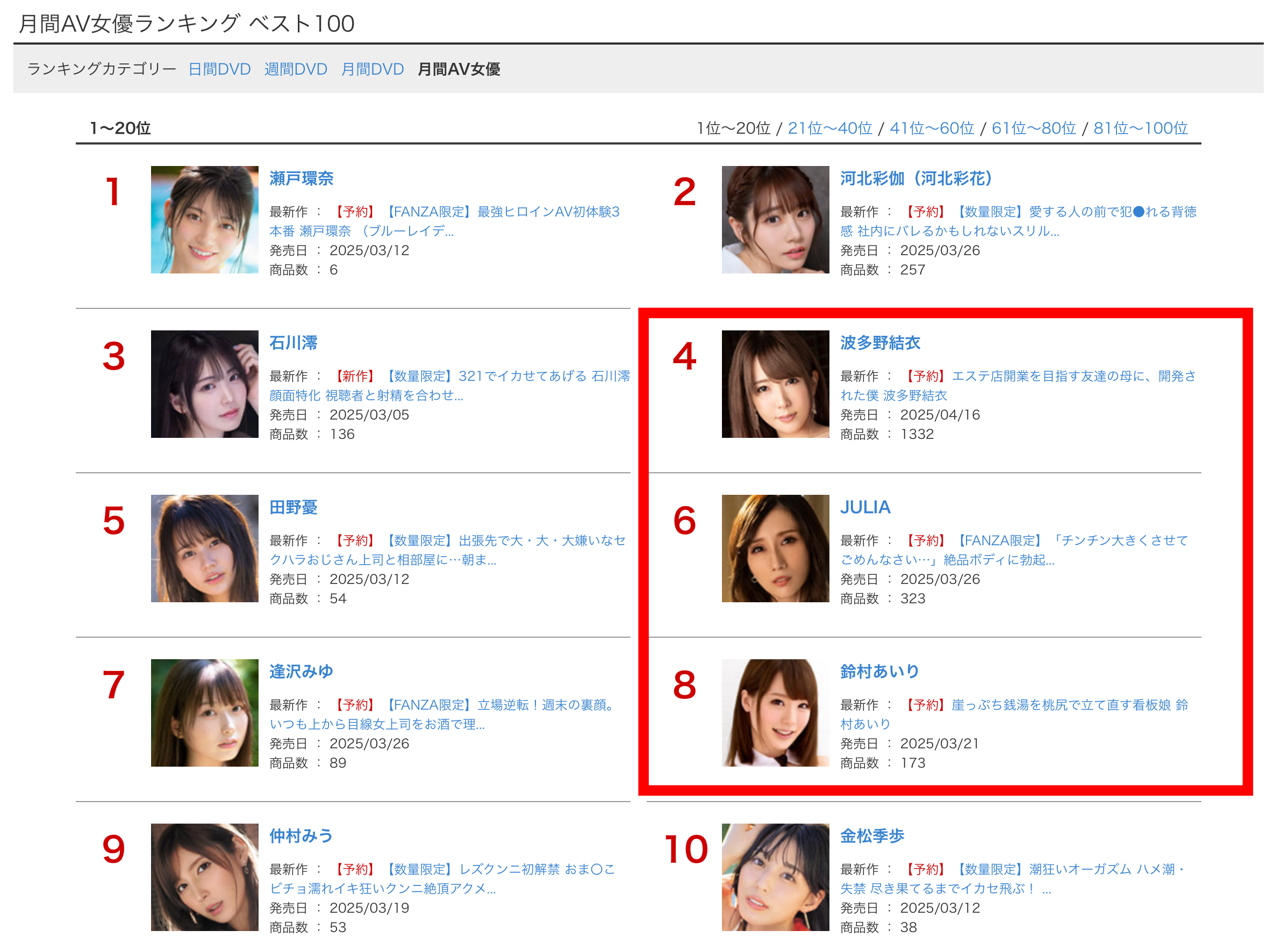 以上,是日本AV界最大销售网站FANZA的2月销售排行榜。
