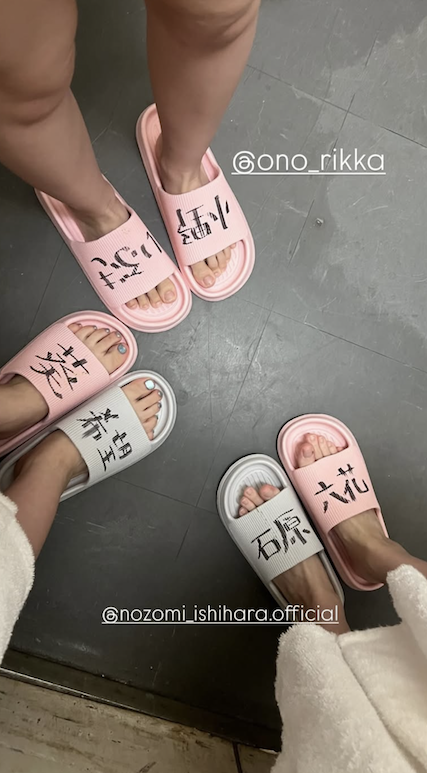 这是小野六花(https://www.instagram.com/ono_rikka/) 昨天放在IG限时动态的照片,三个人六个脚丫子,小野六花、石原希望和葵いぶき(葵伊吹)混穿在一起,这代表什么意义呢?