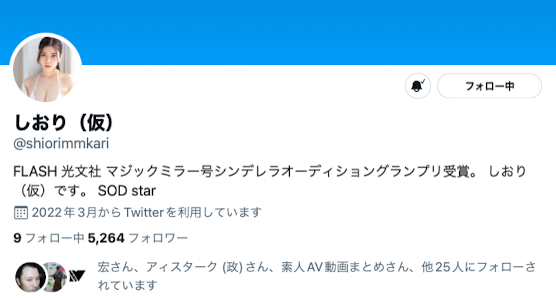 但真正怪的是她出道以来的状况:应该很多人和我一样,觉得她明明是超级大物,但SOD好像不太重视她:以しおり(诗织)之名拿下マジックミラー号(魔镜号)上路25周年的影迷票选冠军,用化名发一支作品再换艺名正式出道是完全正确的做法,但怪就怪在当她得到「神木丽」的艺名后什么都不对了,SOD仿佛忘了她的存在,一起参加票选的「亜莉纱」和「吉川瞳美」都比她有更多的曝光机会,接着她自己好像也放弃了,twitter自4月19日后再也没有更新,新片出来到现在也没反应,看着twitter上的她仍然叫「しおり(仮)」我好想哭,姑娘啊姑娘,妳是怎么了?