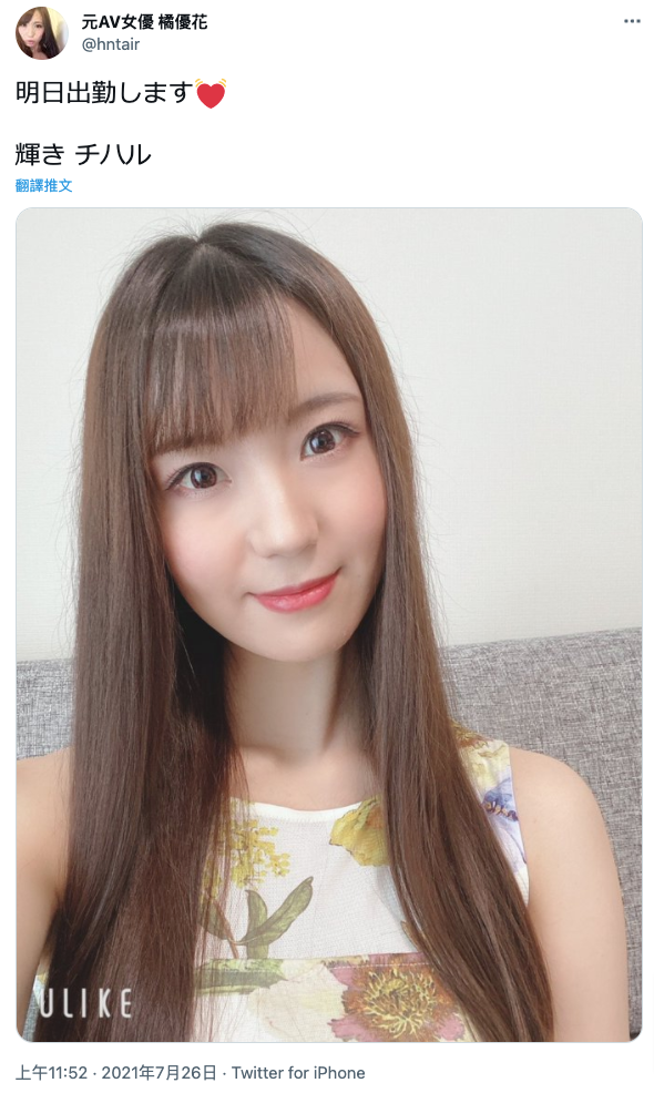 很遗憾,不是的,请大家看看她目前在twitter上的名字是什么?是「元AV女优 橘优花」,意思是她现在不是AV女优了,拍片不是她的选项;至于为什么不拍片又要发文?她写出来的东西就告诉我们答案了: